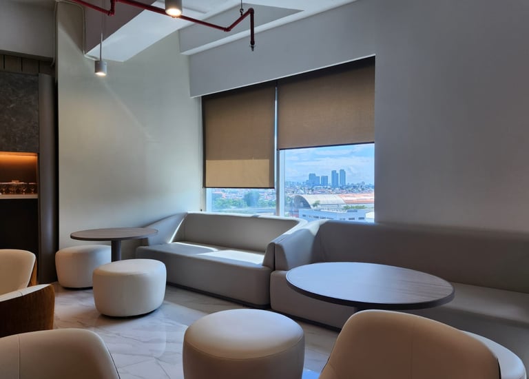 A modern lounge designed for informal meetings, relaxation, and collaborative interaction.